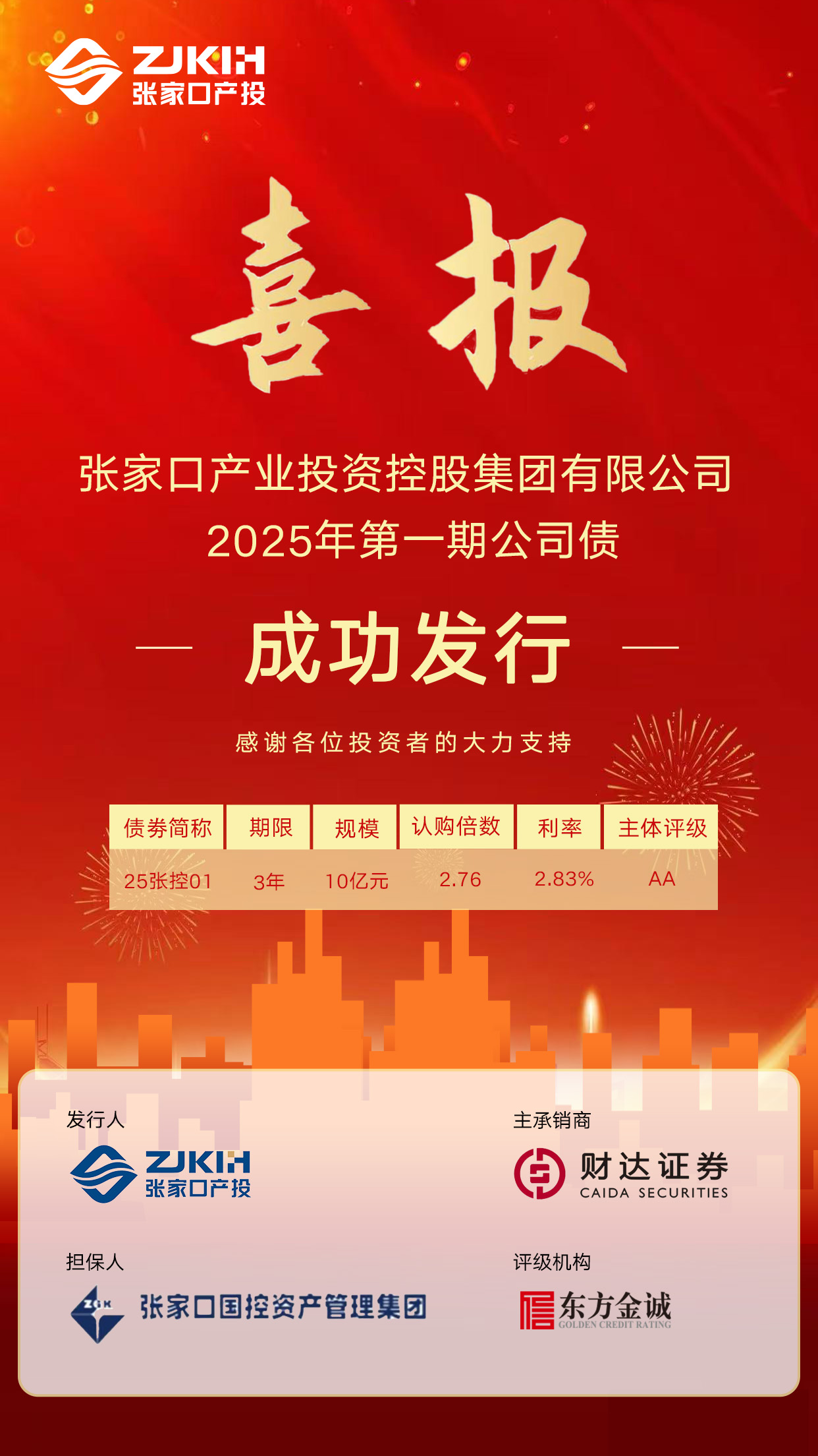 喜報!張家口產(chǎn)投成功發(fā)行10億元公司債券
